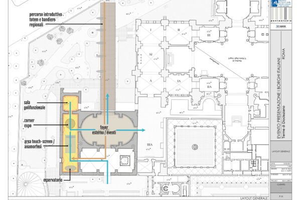 L’esperienza si conclude nella saletta polifunzionale dove saranno possibili proiezioni (su 3 lati contemporaneamente) per creare le atmosfere ideali nell’identificazione della Regione che presenzia. Saranno possibili piccole conferenze tramite una flessibilità organizzativa dell’ambiente in relazione alle esigenze specifiche. Lo spazio viene arredato con una breve sosta/pausa che può essere affrontata come punto di osservazione speculare fra le diverse proiezioni.